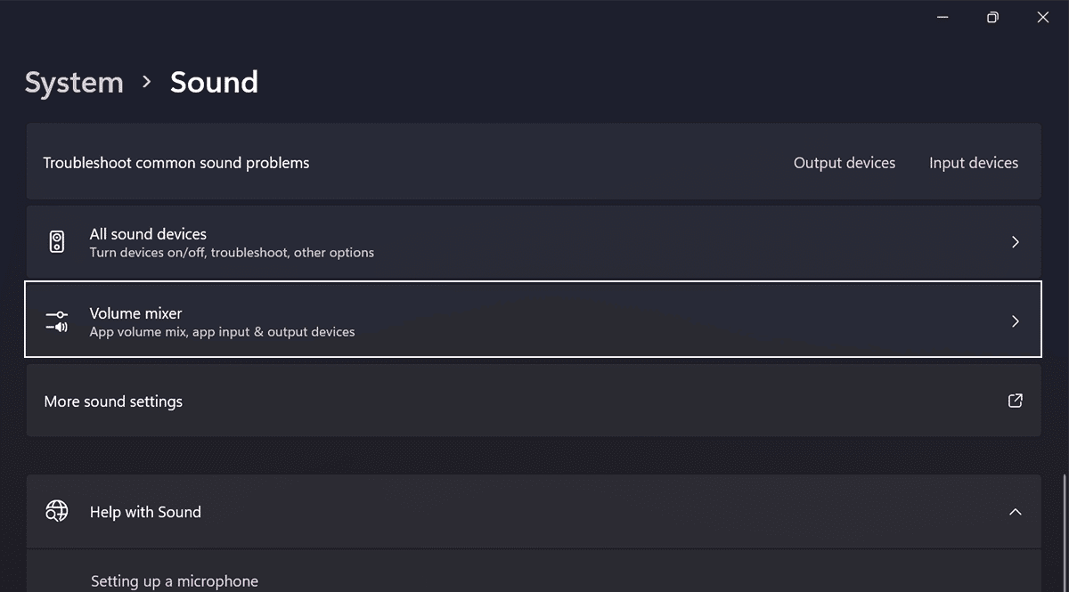 Κάτω από τοΠροχωρημένοςΕνότητα> Κάντε κλικ στοΜίξερ όγκουσύνθεση.