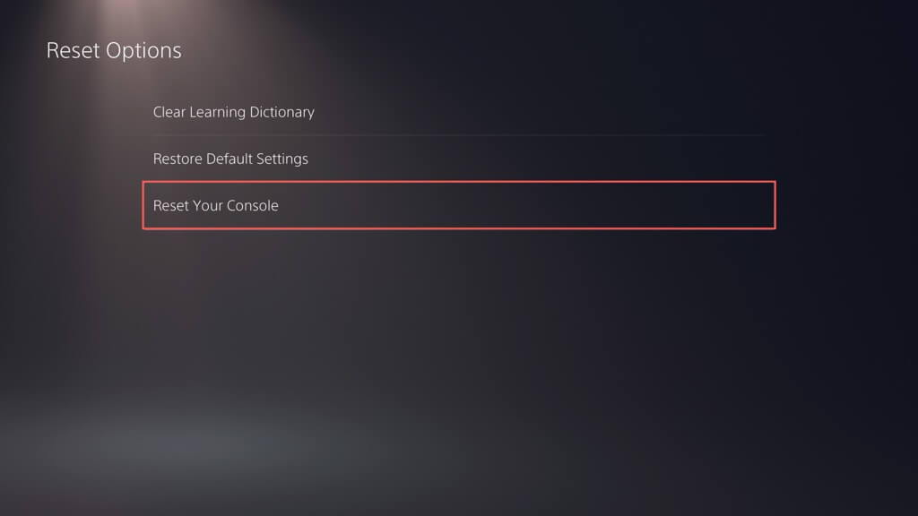 Σημείωμα: Εάν αντιμετωπίζετε την αντιμετώπιση της κονσόλας, σας συνιστούμε να επιλέξετε τοΕπαναφορά προεπιλεγμένων ρυθμίσεωνεπιλογή πρώτα. Αυτό αποκαθιστά τις ρυθμίσεις του PS5 σας στις προεπιλογές του εργοστασίου χωρίς να διαγράψετε οποιαδήποτε δεδομένα χρήστη και μπορεί να είναι χρήσιμο εάν η διαμόρφωση των διεφθαρμένων ρυθμίσεων είναι το πρόβλημα.
