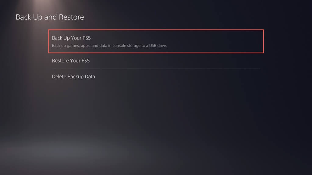 Η επαναφορά του εργοστασίου PS5 διαγράφει τα δεδομένα στην εσωτερική αποθήκευση σας. Ωστόσο, προτού προχωρήσετε, μπορείτε να δημιουργήσετε αντίγραφα ασφαλείας των παιχνιδιών, των εφαρμογών, της αποθήκευσης δεδομένων και των ρυθμίσεων και να επαναφέρετε τα πάντα στην ίδια ή μια διαφορετική κονσόλα αργότερα.