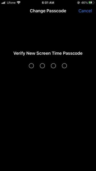 - ΠαρακέντησηΑλλάξτε τον κωδικό πρόσβασης χρόνου οθόνηςπάλι.