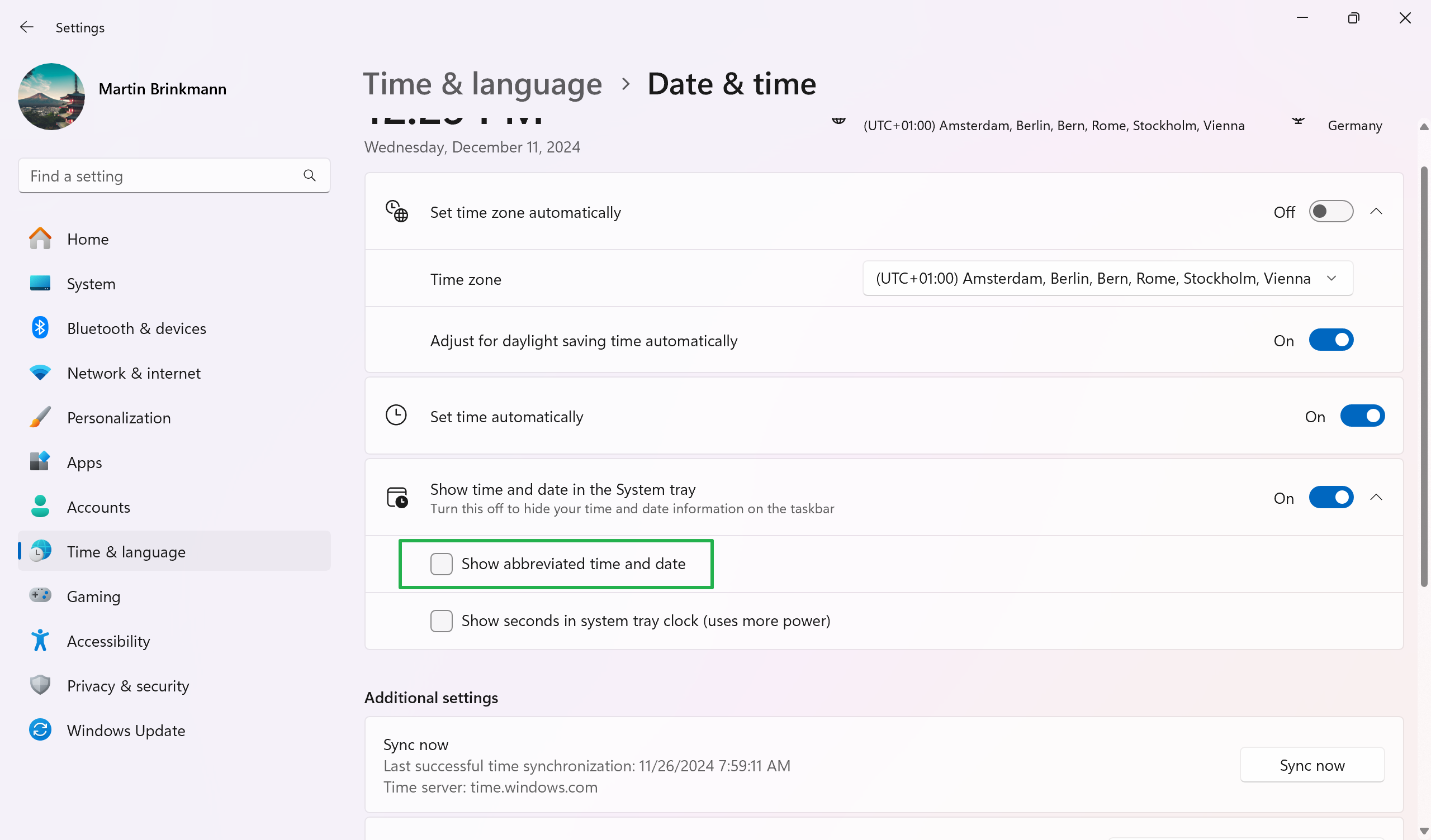 - Κάντε διπλό κλικ στο "Απενεργοποιήστε τη μορφή συντομογραφίας χρόνου και ημερομηνίας".