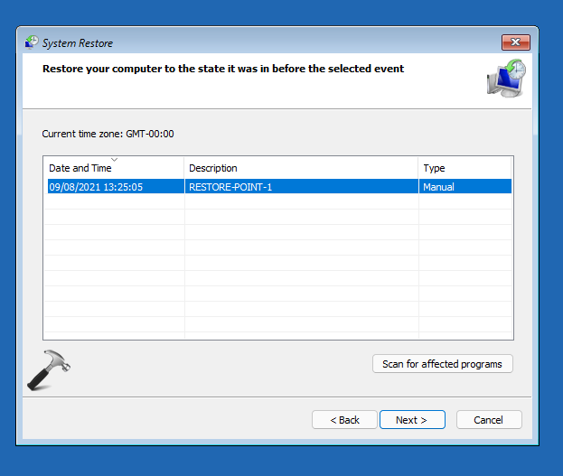 5.Μετά την επανεξέταση των προσβεβλημένων προγραμμάτων, κάντε κλικ στο κουμπίΚοντάΓια να επιστρέψετε στο προηγούμενο παράθυρο. Χρησιμοποιώντας το κουμπί Scan for Affected Programs, θα πρέπει να πάρετε το καλύτερο σημείο αποκατάστασης που είναι επωφελές για εσάς.