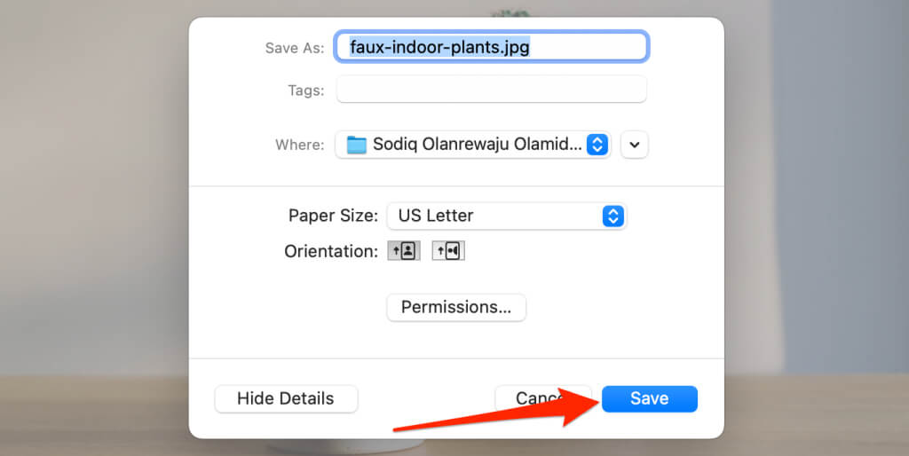 - Το αρχείο PDF μπορεί να έχει το ίδιο όνομα με το αρχικό αρχείο εικόνας. Αν θέλετε, δώστε στο αρχείο PDF ένα διαφορετικό όνομα στο πεδίο "Αποθήκευση ως". Μετά, επιλέξτε τοΟπουαναπτυσσόμενο εικονίδιο για να επιλέξετε πού θέλετε να αποθηκεύσετε το αρχείο PDF στον υπολογιστή σας.