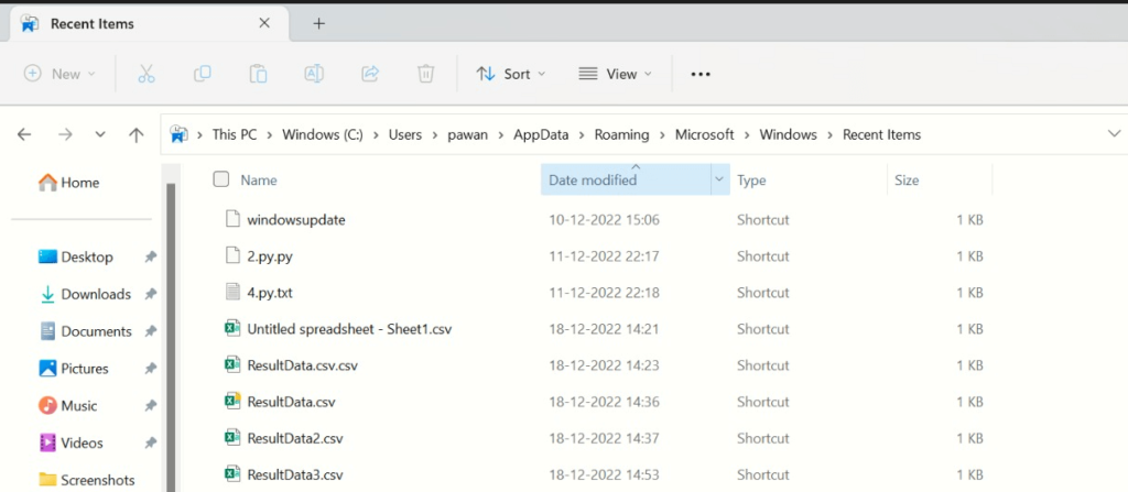 Τις περισσότερες φορές, η γρήγορη πρόσβαση δείχνει τα πρόσφατα ανοιχτά αρχεία στο File Explorer, αλλά περιστασιακά δυσλειτουργεί και σταματά να το κάνει. Επομένως, μπορείτε να ελέγξετε πρόσφατα τα αντικείμενα που ανοίγουν πρόσφατα στοΠρόσφατος φάκελοςΕάν δεν είστε σε θέση να έχετε γρήγορη πρόσβαση στην εμφάνιση που άνοιξε πρόσφατα αρχεία ή εάν θέλετε να δείτε μια λίστα με όλα τα πιθανά στοιχεία που έχουν ανοίξει ή χτυπηθεί με. .