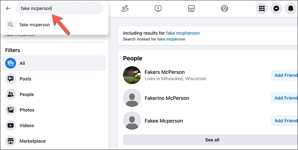 Πρώτον, θα πρέπει να πληκτρολογήσετε το όνομα του ατόμου στη γραμμή αναζήτησης στην ιστοσελίδα του Facebook στο πρόγραμμα περιήγησης ιστού σας ή μέσω της εφαρμογής Facebook και μιας αναζήτησης. Οι ιδιωτικοί λογαριασμοί Facebook πρέπει να παραμείνουν εύλογα προσβάσιμοι, ακόμη και αν δεν μπορείτε να δείτε πολλά γι 'αυτούς, όπως θα έπρεπε να κλειδωθούν τα προφίλ του Facebook. Ωστόσο, ο χρήστης δεν θα εμφανιστεί στα αποτελέσματα αναζήτησης εάν έχετε μπλοκαριστεί στο Facebook. Εάν ήταν προηγουμένως φίλος στο Facebook, μπορείτε να το επιβεβαιώσετε εξετάζοντας τη λίστα του φίλου σας και ελέγξτε αν εξακολουθούν να εμφανίζονται ή όχι.