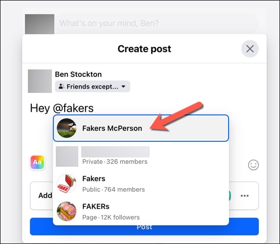 Θα μπορούσατε επίσης να ελέγξετε τις κοινές ομάδες. Εάν τα παρασκευασμένα σχόλια από τον χρήστη λείπουν σε μια δημόσια ομάδα, ίσως έχετε αποκλειστεί. Μπορείτε επίσης να επισημάνετε άτομα στα σχόλιά σας σε αυτές τις κοινές ομάδες. Εάν το μπλοκαρισμένο άτομο δεν εμφανίζεται στο αναπτυσσόμενο μενού, αυτό θα ήταν ένας άλλος δείκτης που έχετε αποκλείσει.