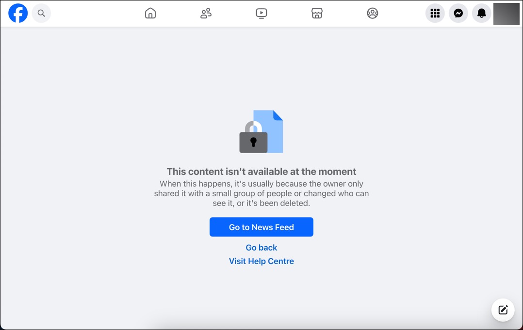 Εάν γνωρίζετε την άμεση διεύθυνση URL στο προφίλ τους, μπορείτε επίσης να το δοκιμάσετε. Εάν έχετε αποκλειστεί, δεν θα έχετε πρόσβαση στο προφίλ. Το Facebook δεν θα σας πει ότι έχετε αποκλείσει, αλλά θα δείτε ένα μήνυμα σφάλματος που σας λέει ότι το προφίλ δεν είναι προσβάσιμο αυτή τη στιγμή.