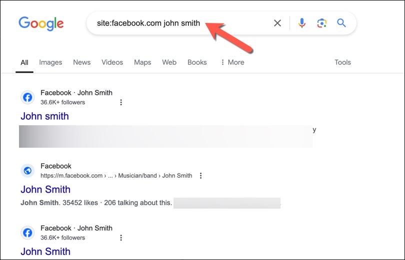 Θα μπορούσατε να χρησιμοποιήσετε μια μηχανή αναζήτησης για να σας βοηθήσει να τα βρείτε. Για λογαριασμούς που είναι πιο ορατοί από τους άλλους, μια αναζήτηση στο Google (π.χ. "Όνομα Facebook" ή "Site Site: Facebook.com") θα μπορούσε να σας βοηθήσει να εντοπίσετε ξανά το προφίλ τους και να το κάνετε ορατό.