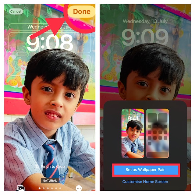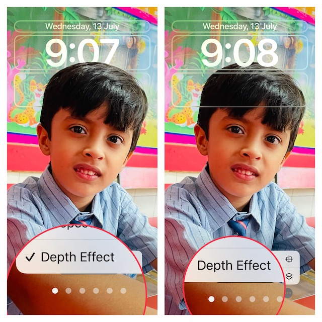 Για όσους δεν είναι εξοικειωμένοι, το φαινόμενο βάθους σας επιτρέπει να τραβήξετε φωτογραφίες με έντονη εστίαση στο θέμα και ένα θολές υπόβαθρο. Όταν ενεργοποιείτε το φαινόμενο βάθους για μια ταπετσαρία οθόνης κλειδώματος στο iPhone σας, το θέμα στην εικόνα εμφανίζεται πάνω από το χρόνο. Και όταν είναι απενεργοποιημένο, το θέμα πηγαίνει κάτω από το χρόνο.