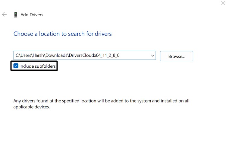 4.Ακολουθήστε τις οδηγίες στην οθόνη για να εγκαταστήσετε με μη αυτόματο τρόπο τα προγράμματα οδήγησης στον υπολογιστή σας Windows 11.