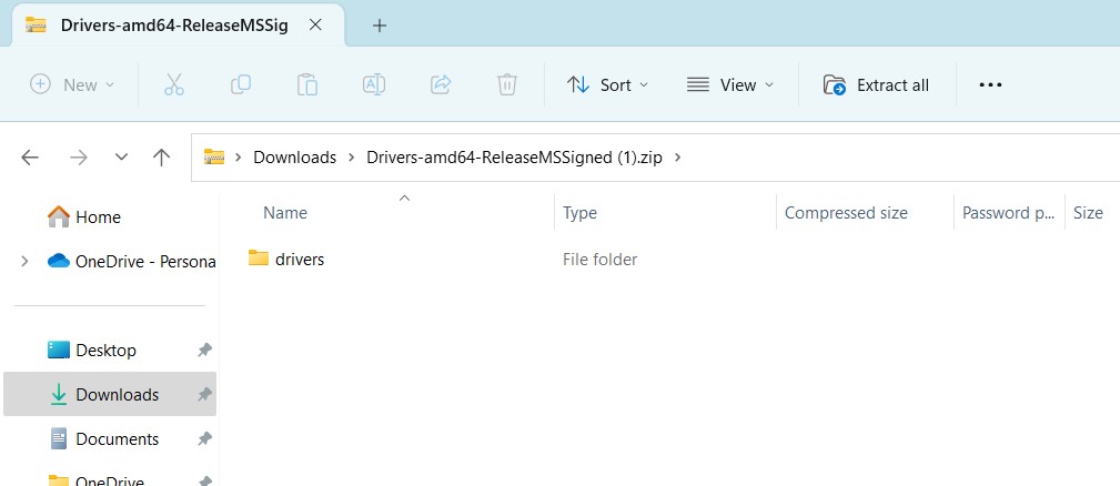 1.Ανοίγω τοΟδηγοί-amd64-releasemssigned.zipαρχείο και προχωρήστε στοοδηγοίντοσιέ.