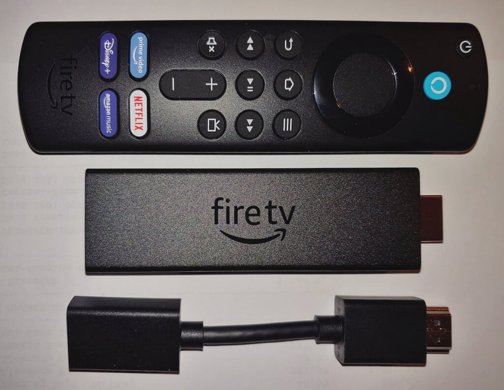 Το ραβδί της Amazon Fire TV περιλαμβάνει το απομακρυσμένο πυρκαγιά, το ίδιο το ραβδί πυρκαγιάς, τον προσαρμογέα ισχύος και το καλώδιο Micro USB.