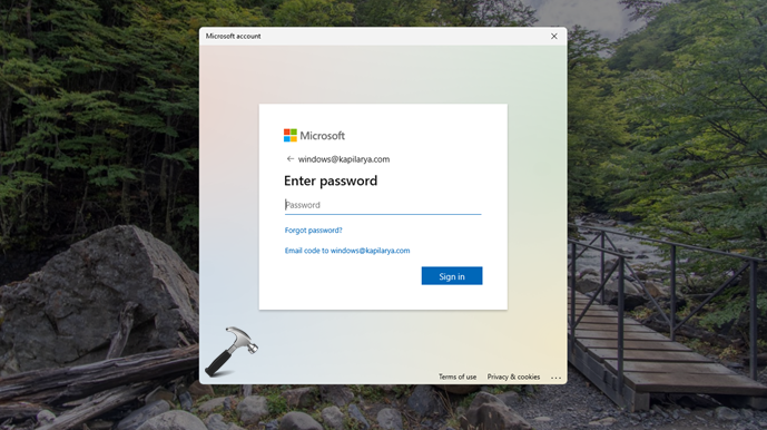 2.Τώρα το παράθυρο λογαριασμού της Microsoft θα αναδυθεί. Συνδεθείτε στον λογαριασμό σας Microsoft με τον κωδικό πρόσβασής σας.