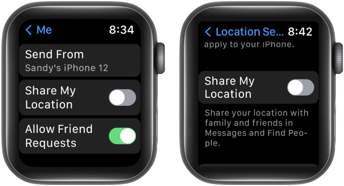 Η εφαρμογή Find People στο Apple Watch δεν είναι μόνο για τον εντοπισμό άλλων. Μπορείτε να το χρησιμοποιήσετε για να μοιραστείτε τη δική σας τοποθεσία με την οικογένεια ή τους φίλους σας.
