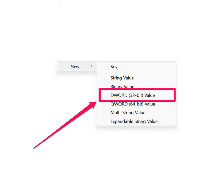 6.Στο εν λόγω αναπτυσσόμενο μενού, επιλέξτε τοΤιμή dword (32-bit)επιλογή.