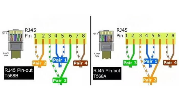 Το πιο συνηθισμένο σχήμα είναι το T568B, αλλά μπορείτε να χρησιμοποιήσετε είτε εάν το χρησιμοποιείτε με συνέπεια. Το καλώδιο που συναρμολογείτε πιθανώς χρησιμοποιεί το T568B, το προτιμώμενο σχήμα καλωδίωσης για νέες εγκαταστάσεις δικτύου στις ΗΠΑ.