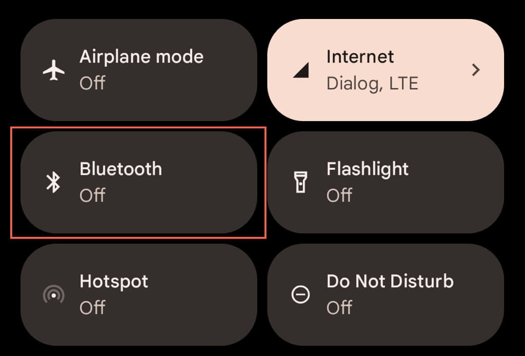Για να απενεργοποιήσετε τη συνδεσιμότητα Bluetooth, απλά σύρετε προς τα κάτω από την κορυφή της οθόνης σας και πατήστε στοBluetoothπλακάκι.