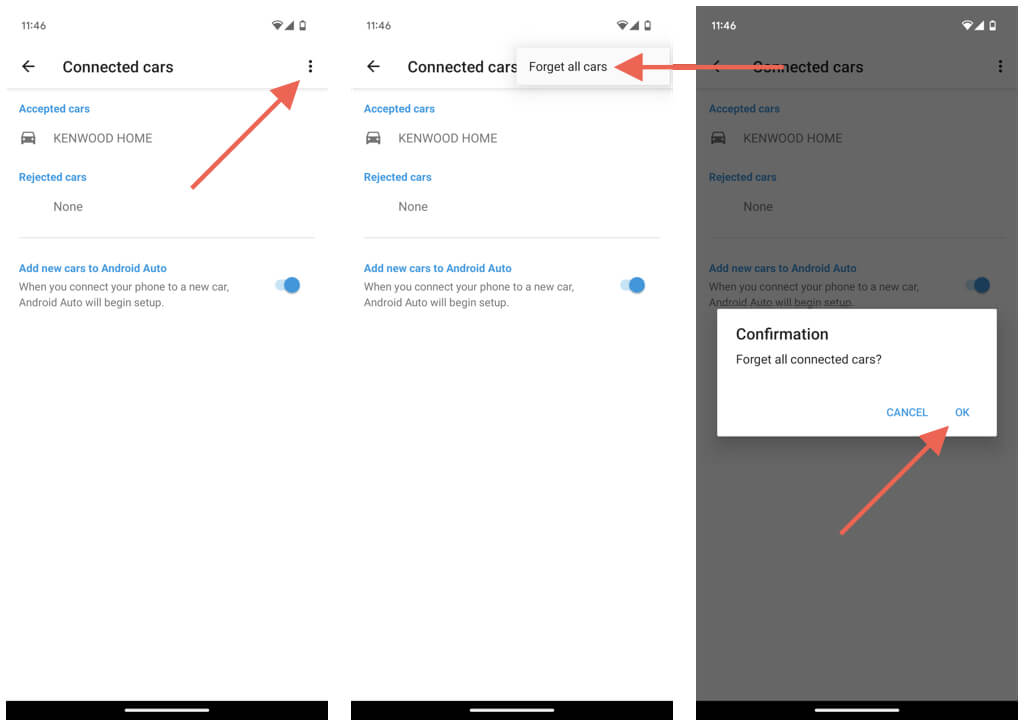 Εάν θέλετε να ξεχάσετε όλα τα αυτοκίνητα, πατήστε τοΠερισσότεροεικονίδιο (τρεις κουκκίδες) στο επάνω δεξιά της οθόνης και επιλέξτεΞεχάστε όλα τα αυτοκίνητα. ΠαρακέντησηΕΝΤΑΞΕΙσχετικά με την προτροπή επιβεβαίωσης.