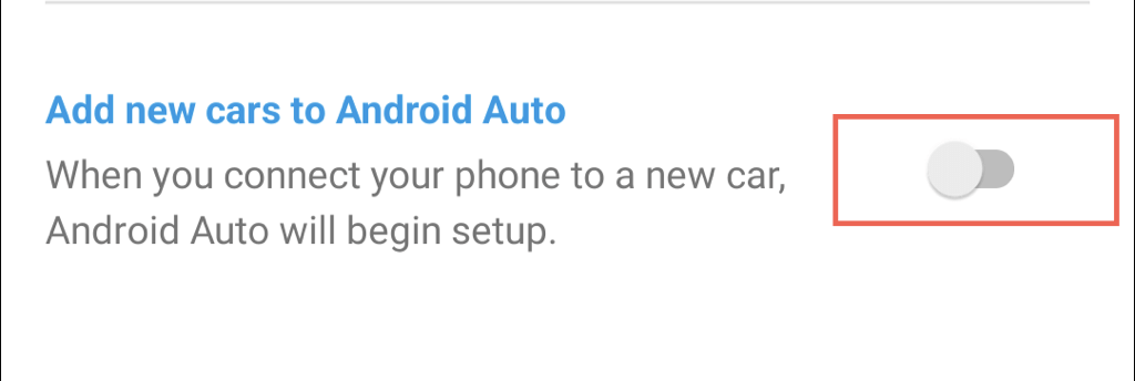 Προαιρετικά, απενεργοποιήστε το διακόπτη δίπλα στοΠροσθέστε νέα αυτοκίνητα στοAndroid AutoΓια να σταματήσετε το τηλέφωνό σας να σας ζητήσει να ρυθμίσετε το Android Auto κάθε φορά που το συνδέετε με φορτιστή αυτοκινήτου.