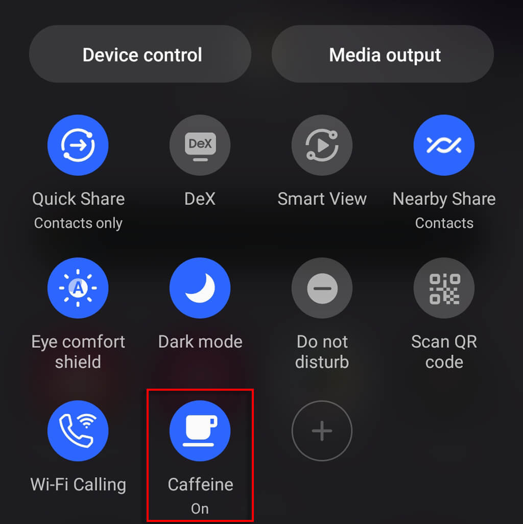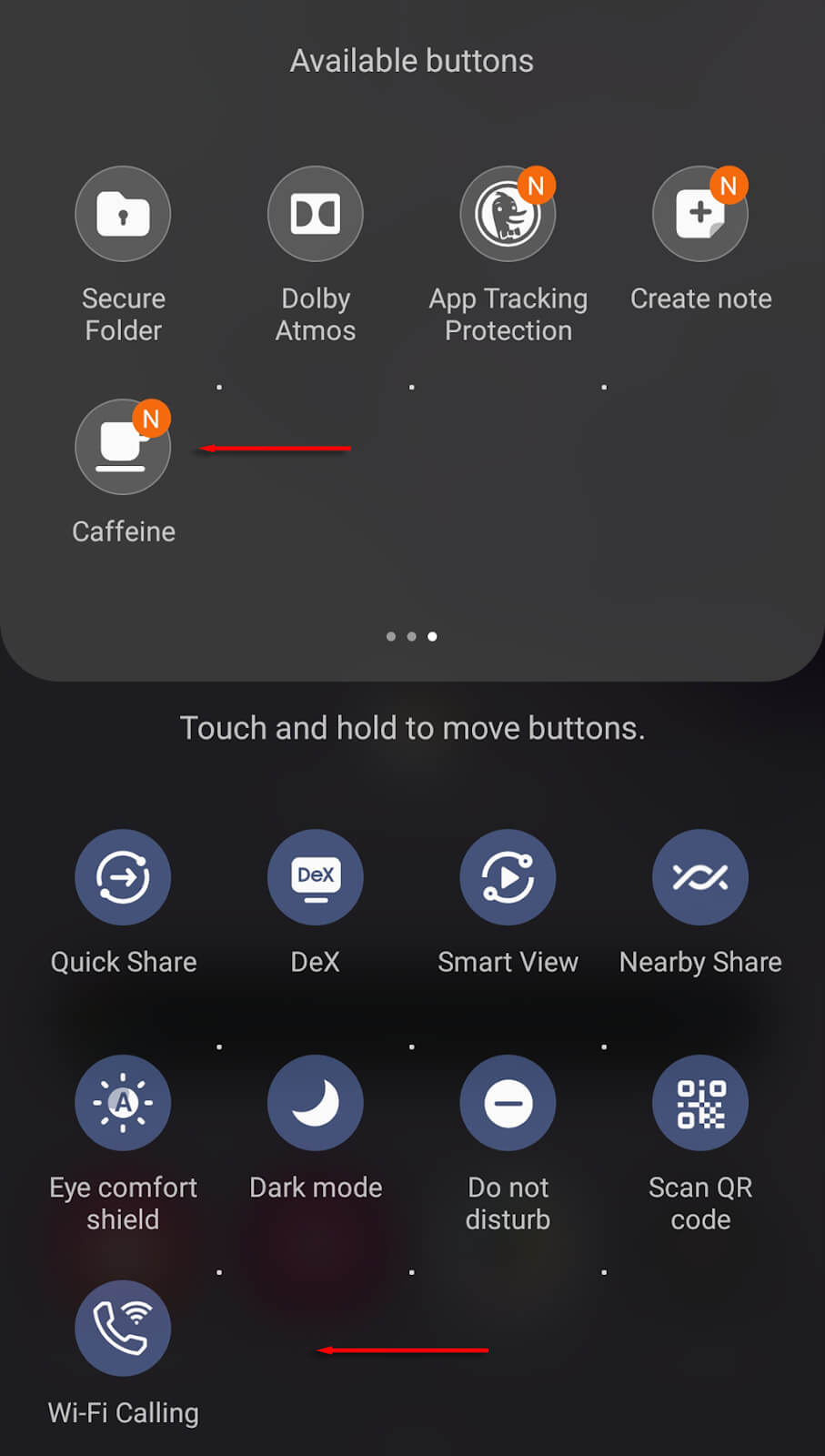 - Σύρουν τοΕικονίδιο καφεΐνηςσεΓρήγορες ρυθμίσειςμενού.