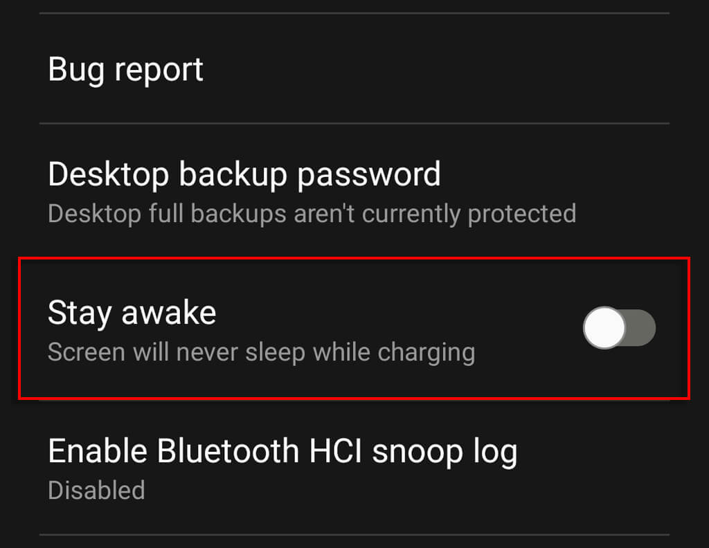 Οι επιλογές προγραμματιστών είναι ένα μενού κρυφών ρυθμίσεων που επιτρέπουν στους χρήστες του Android να χρησιμοποιούν εντοπισμό σφαλμάτων USB και να κάνουν προηγμένες αλλαγές στα τηλέφωνά τους. Μία από αυτές τις ρυθμίσεις ονομάζεται "Stay Awake", το οποίο εμποδίζει την απενεργοποίηση της οθόνης σας ενώ το τηλέφωνο είναι συνδεδεμένο σε καλώδιο φόρτισης.