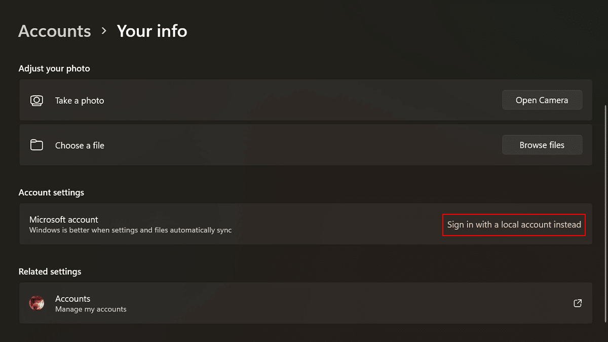 Τα Windows 11 επιτρέπουν στους χρήστες να αλλάζουν από λογαριασμό της Microsoft σε έναν τοπικό λογαριασμό. Παρόλο που ένας λογαριασμός Microsoft είναι ο προεπιλεγμένος τύπος κατά τη ρύθμιση ενός νέου χρήστη στον υπολογιστή, επιτρέποντάς σας να διαχειριστείτε τα πάντα σε ένα μέρος και να παρέχει καλύτερη ασφάλεια, ενσωμάτωση με τις υπηρεσίες της Microsoft και εύκολα αρχεία και συγχρονισμό ρυθμίσεων μεταξύ των συσκευών.