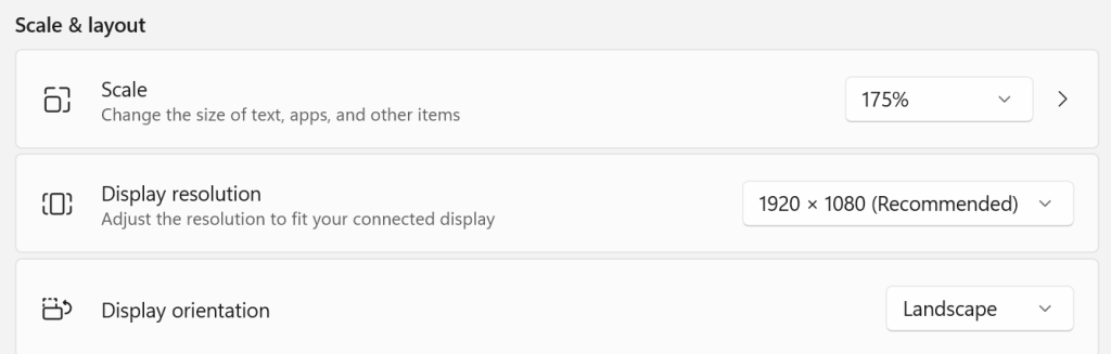 Βήμα 3:Τώρα, στη δεξιά πλευρά, εντοπίστε την κλίμακα και τη διάταξη και κάντε κλικ στις προηγμένες ρυθμίσεις κλιμάκωσης.