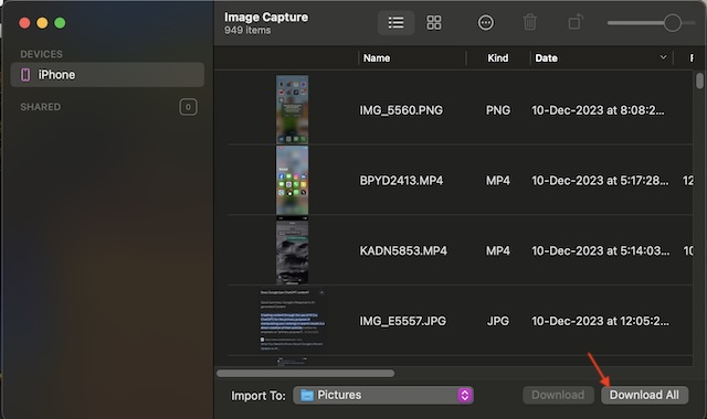 6.Εάν επιθυμείτε να μεταφέρετε όλες τις φωτογραφίες από τη συσκευή σας iOS, κάντε κλικ στο"Κατεβάστε όλα"κουμπί στην κάτω δεξιά γωνία της οθόνης.