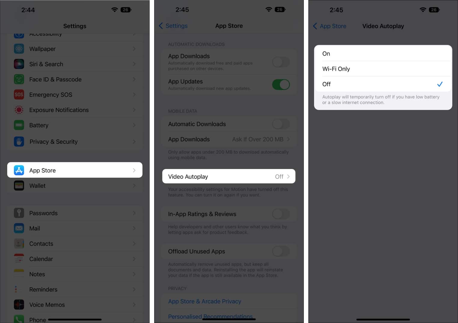 Σημείωμα:Εάν έχετε απενεργοποιήσει τις προεπισκοπήσεις βίντεο αυτόματης αναπαραγωγής από την ενότητα Motion στην προσβασιμότητα, οι ρυθμίσεις αυτόματης απενεργοποίησης βίντεο θα απενεργοποιηθούν αυτόματα.