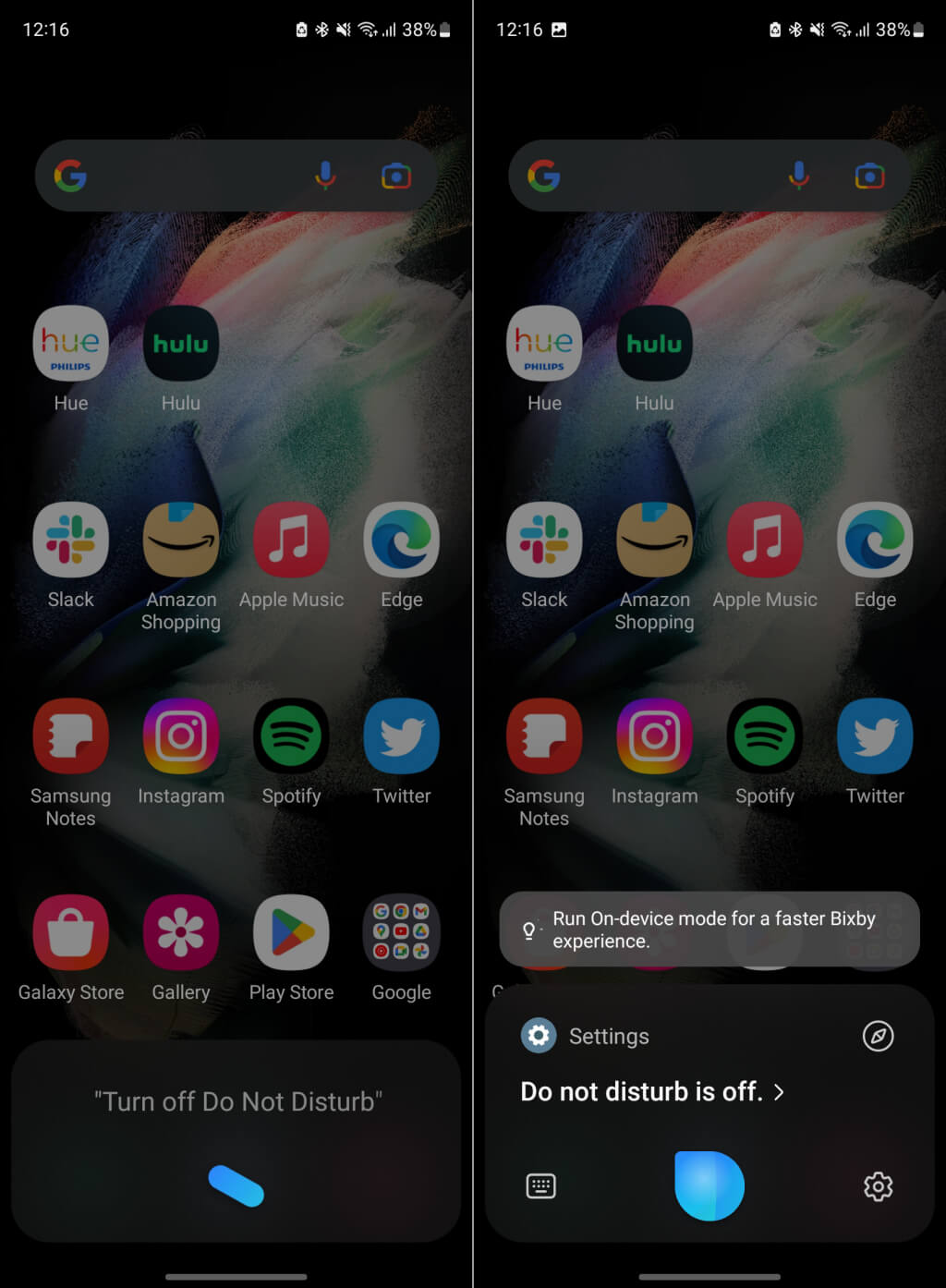 Ξεκλειδώστε το τηλέφωνό σας και πείτε, "Γεια Bixby, απενεργοποιήστε μην ενοχλείτε." ή "Γεια Bixby, απενεργοποιήστε μην ενοχλείτε."