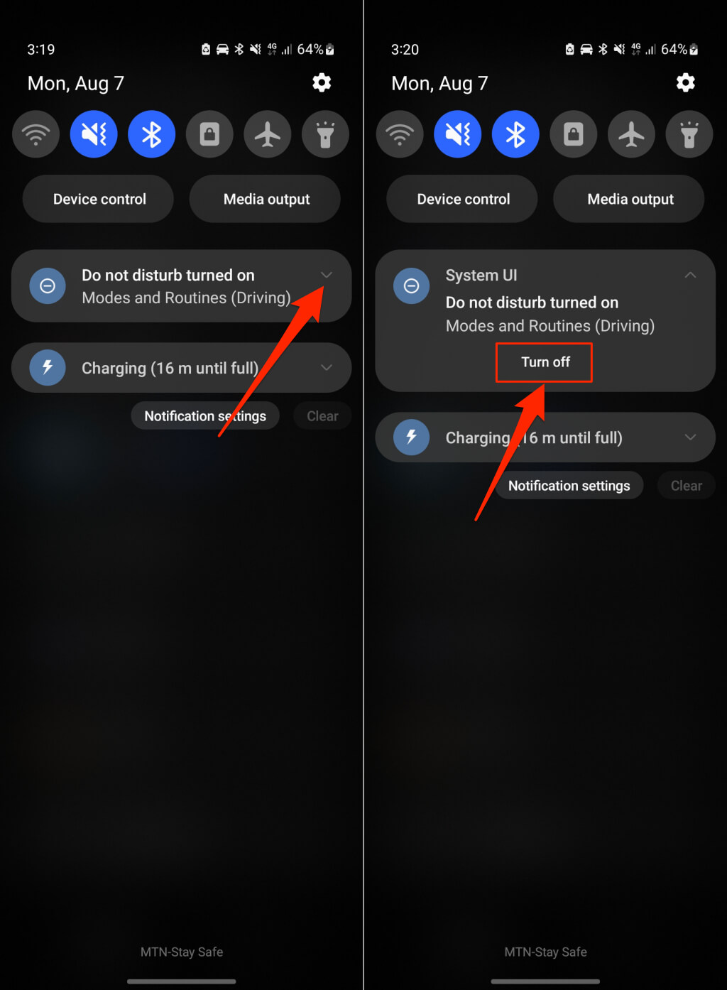 Όταν ενεργοποιείτε μην ενοχλείτε τις συσκευές Samsung Galaxy, εμφανίζεται στο πλακάκι "μην ενοχλείτε ενεργοποιημένο" στο κέντρο ειδοποιήσεων. Μπορείτε να απενεργοποιήσετε μην ενοχλείτε από το πλακίδιο ειδοποίησης.
