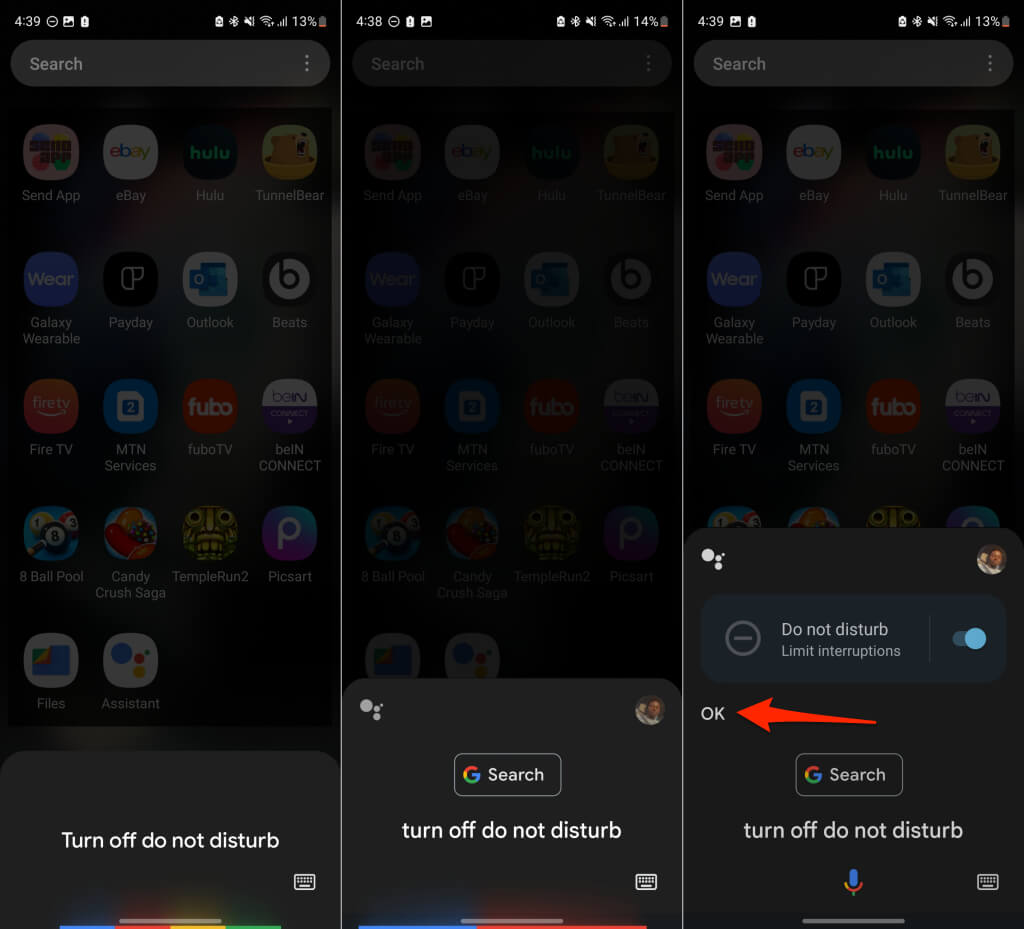 Μπορείτε να απενεργοποιήσετε μην ενοχλείτε τη χρήση της φωνητικής εντολής εάν έχετε ρυθμίσει το Google Assistant στη συσκευή σας Android.