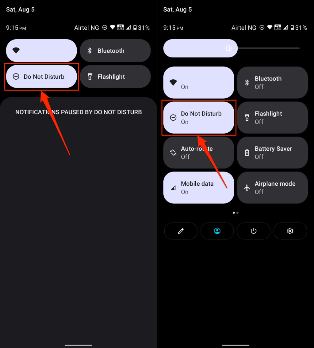Στη συνέχεια, πατήστε το εικονίδιο για να ενεργοποιήσετε ή να απενεργοποιήσετε μην ενοχλείτε τη συσκευή σας Android.