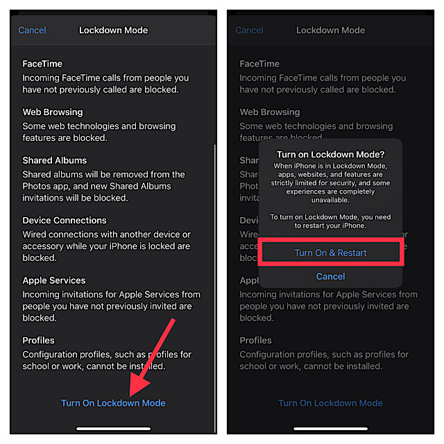 Όπως αναφέρθηκε παραπάνω, η λειτουργία Lockdown είναι μια εξαιρετικά αποτελεσματική ασπίδα ασφαλείας που αναπτύχθηκε για την προστασία των χρηστών από προσωπικά στοχευμένες εξελιγμένες κυβερνοεπιλογές. Όταν ενεργοποιείται, η συσκευή δεν λειτουργεί όπως συνήθως.