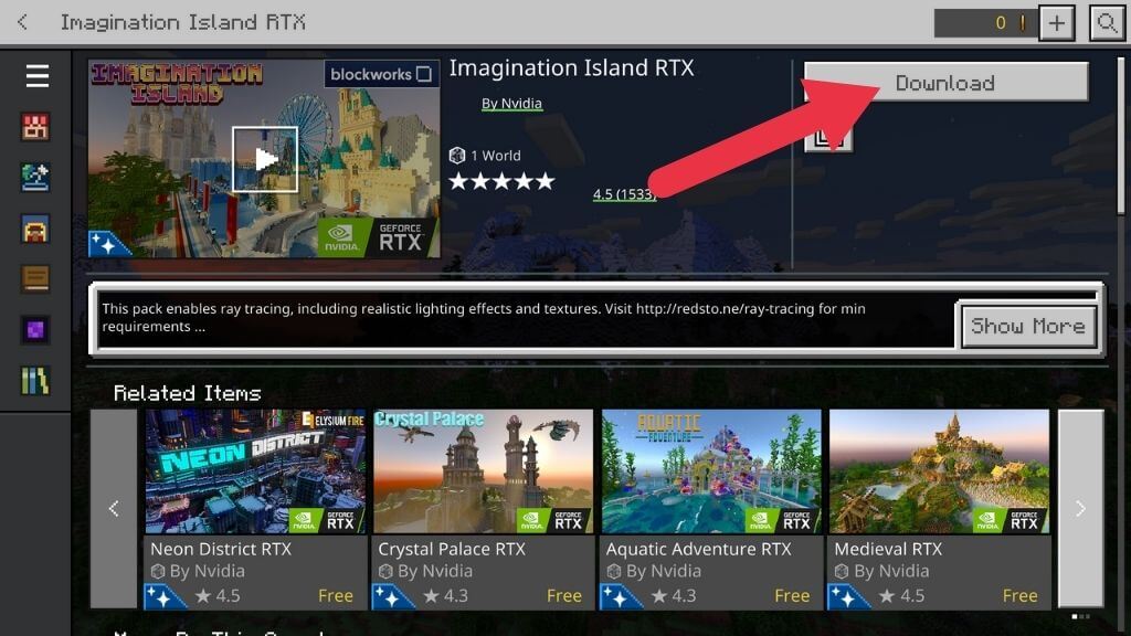 - Για να το ενεργοποιήσετε, θα χρειαστείτε ένα πακέτο πόρων συμβατό με ακτίνες που περιέχει κατάλληλους τύπους υφής και ρυθμίσεις φωτισμού. Γι 'αυτό επιστρέψτε στο κύριο μενού και ανοίξτεΑγορά.