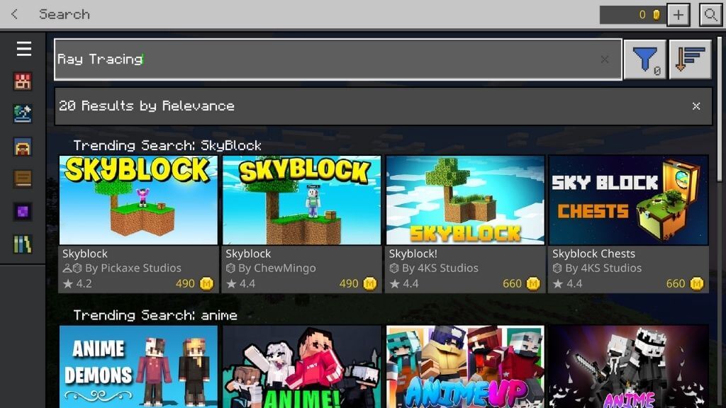 Στο Minecraft, η ανίχνευση Ray κάνει το Minecraft πιο φωτορεαλιστικό. Το φως προσομοιώνεται για να ενεργεί όπως συμβαίνει στην πραγματική ζωή. Οι υφές των αντικειμένων στο Minecraft έχουν επίσης αντικατασταθεί με υλικά PBR (φυσικά βασισμένη απόδοση) με λειτουργία ανίχνευσης ακτίνων. Με άλλα λόγια, το ξύλο έχει τα οπτικά χαρακτηριστικά του ξύλου. Το μέταλλο λειτουργεί όπως θα έπρεπε, και ούτω καθεξής.