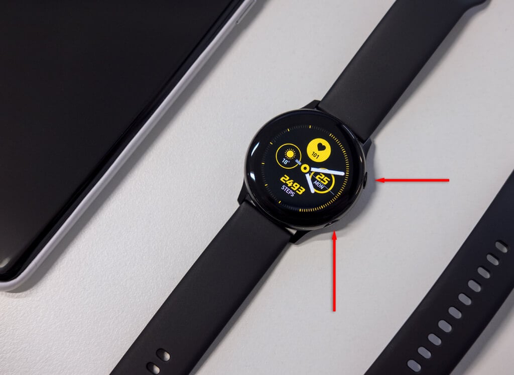 Εάν το smartwatch της Samsung παραμένει μη ανταποκρινόμενο, μπορείτε να το κάνετε επανεκκίνηση πατώντας και κρατώντας τοΚουμπί στο σπίτικαιΠίσω κουμπίταυτόχρονα για 7 δευτερόλεπτα. Το κλειδί πίσω είναι το μόνο άλλο κουμπί στο πλάι του προσώπου ρολογιού.