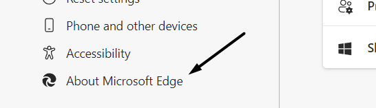 4.Στη συνέχεια, επιλέξτε τοΣχετικά με τη Microsoft Edgeεπιλογή από την αριστερή πλευρά για να ανοίξετε τοΣχετικά με την ενότητατης εφαρμογής Microsoft Edge.