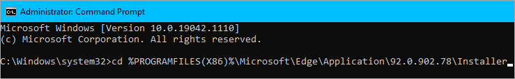 cd/cd %Program Files (x86)%MicrosoftEdgeApplication(EdgeVersion)InstallerΣημείωμα:Πρέπει να αντικαταστήσετε τοΑκτινοβολίακείμενο με τοΤρέχουσα έκδοση της εφαρμογής Microsoft Edge.Μπορείτε να ελέγξετεΒήμα 4για αναφορά.