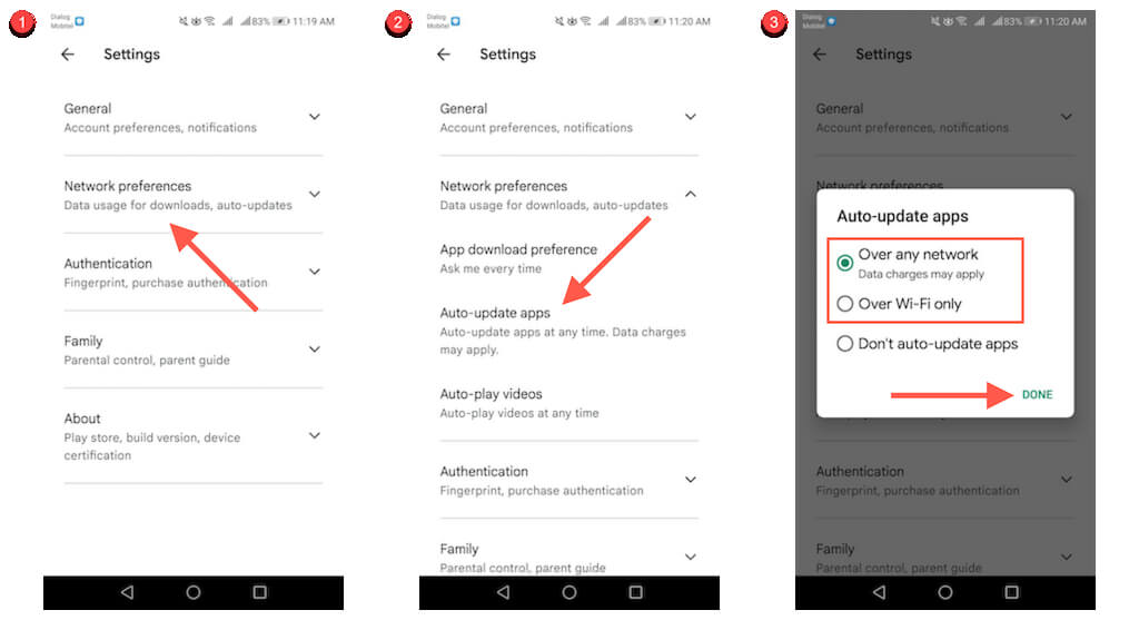 3. ΠατήστεΠροτιμήσεις δικτύου>Εφαρμογές αυτόματης ενημέρωσης.