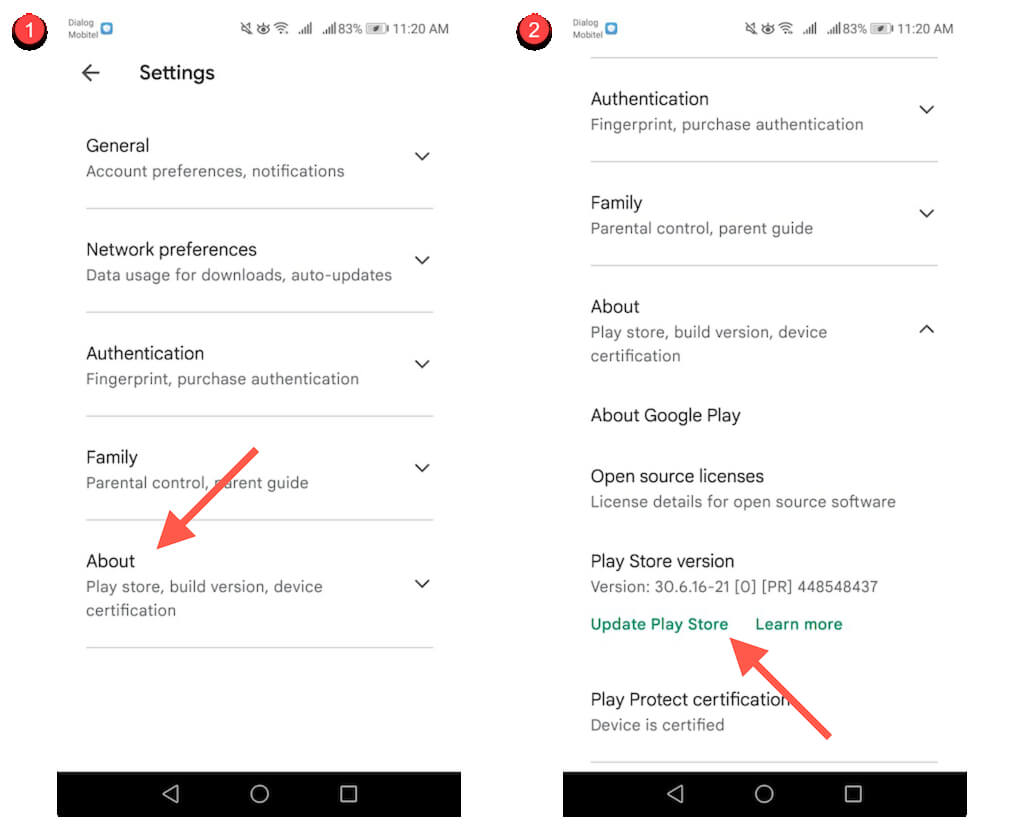 3. Πατήστε τοΕνημέρωση Play Storeσύνδεσμος κάτω απόΈκδοση αποθήκευσης παιχνιδιού.