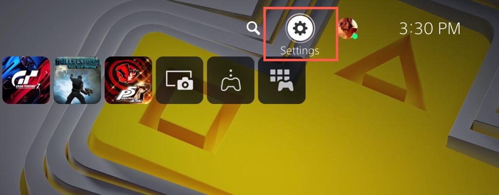 - ΕπιλέγωΡυθμίσειςΣτην επάνω αριστερή γωνία της αρχικής οθόνης του PS5.