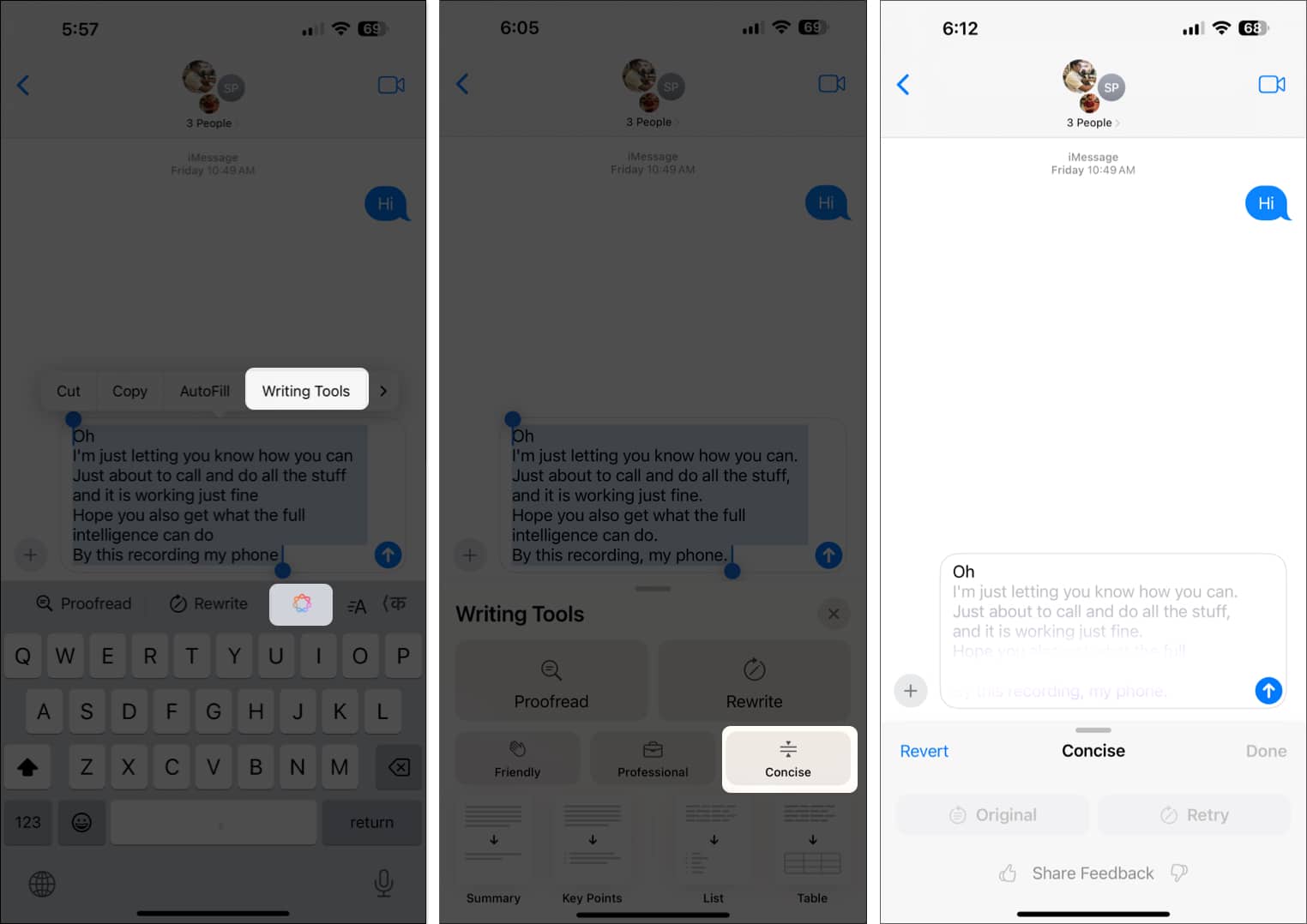 Όπως αναφέρθηκε, μπορείτε να χρησιμοποιήσετε εργαλεία γραφής της Apple Intelligence σε οποιαδήποτε εφαρμογή όπου γράφετε κείμενο. Έχω λεπτομερώς πώς λειτουργεί στην εφαρμογή μηνυμάτων.