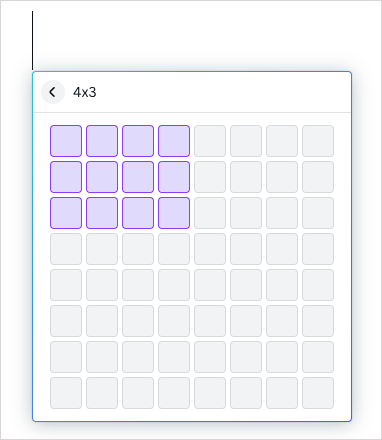 Για να εισαγάγετε έναν βασικό πίνακα με συγκεκριμένο αριθμό στήλες και σειρές, επιλέξτε τοΠροσθέστε μαγείαεικονίδιο, επιλέξτεΤραπέζι, και χρησιμοποιήστε το πλέγμα για να δημιουργήσετε τον πίνακα.