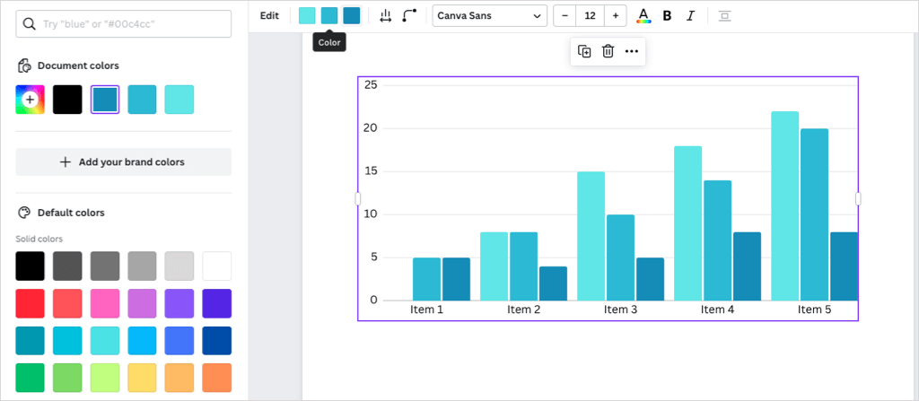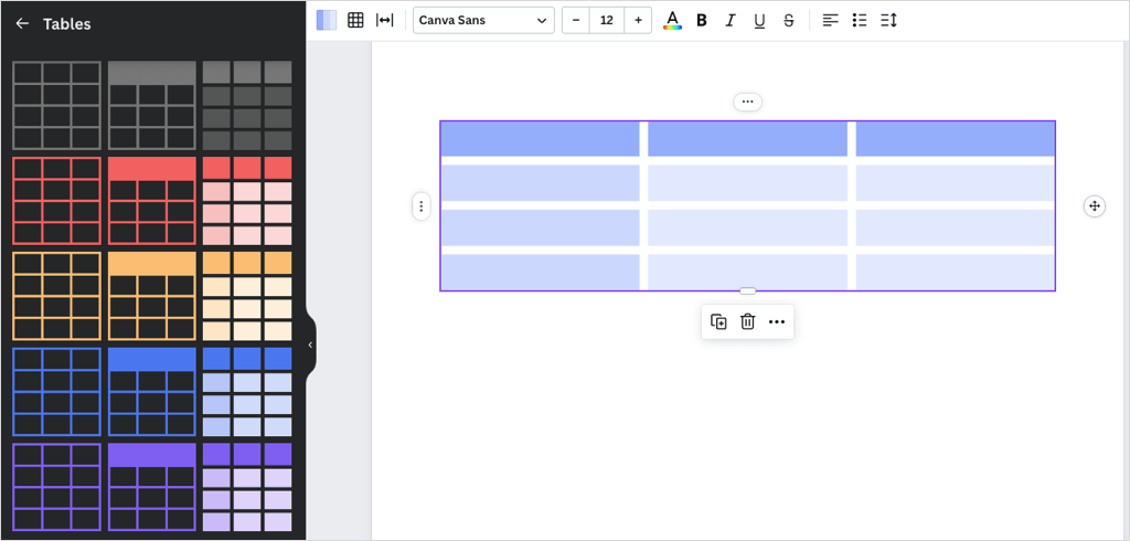 Είτε ξεκινάτε με ένα πρότυπο είτε από το μηδέν, μπορείτε να χρησιμοποιήσετε τις ίδιες επιλογές προσαρμογής για το Doc Canva σας. Εισαγάγετε στοιχεία όπως πίνακες, γραφήματα ή γραφικά, μεταφορτώστε τις δικές σας εικόνες ή βίντεο και προσαρμόστε το κείμενο με στυλ, χρώματα, μορφές ή λίστες.