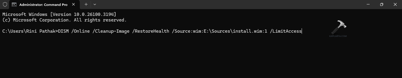 DISM /Online /Cleanup-Image /RestoreHealth /Source:ESourcesinstall.wim /LimitAccess