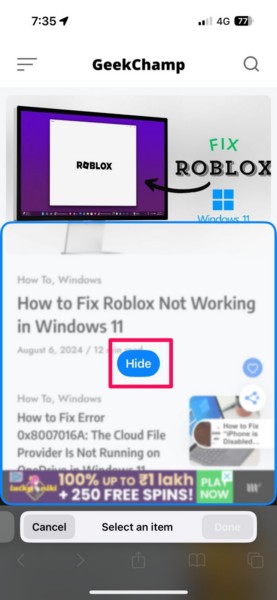 Έτσι, ελέγξτε τα βήματα παρακάτω για να χρησιμοποιήσετε τον έλεγχο της απόσπασης της προσοχής για να αποκρύψετε αντικείμενα στο Safari στο iPhone σας στο iOS 18: