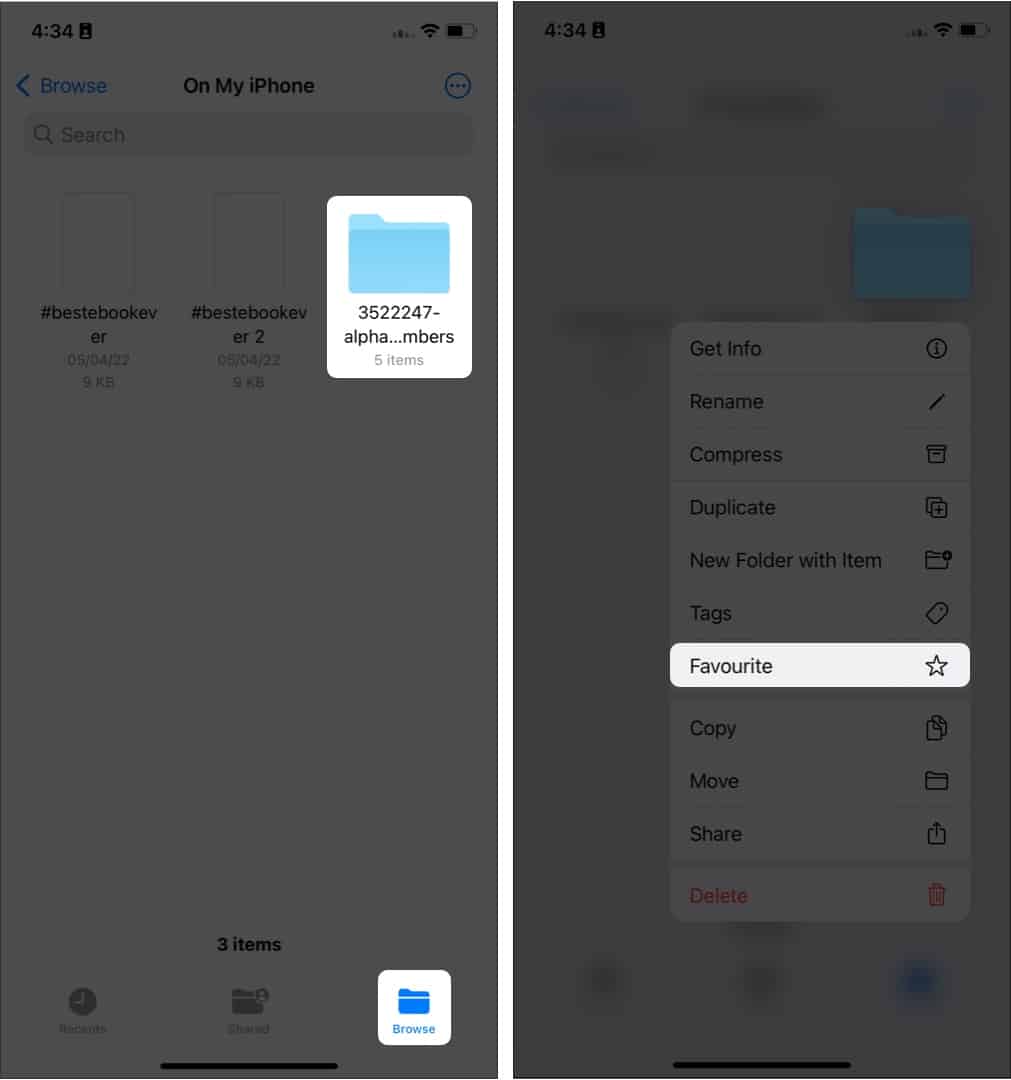 Εάν υπάρχουν πολλά αρχεία στο iPhone σας, είναι καλύτερο να επισημάνετε τα σημαντικά ως αγαπημένα, ώστε να μην χρειάζεται να κοιτάξετε γύρω ή ακόμα και να αναζητήσετε την επόμενη φορά που τα θέλετε. Εδώ μπορείτε να επισημάνετε τα αρχεία ως αγαπημένα στην εφαρμογή αρχείων: