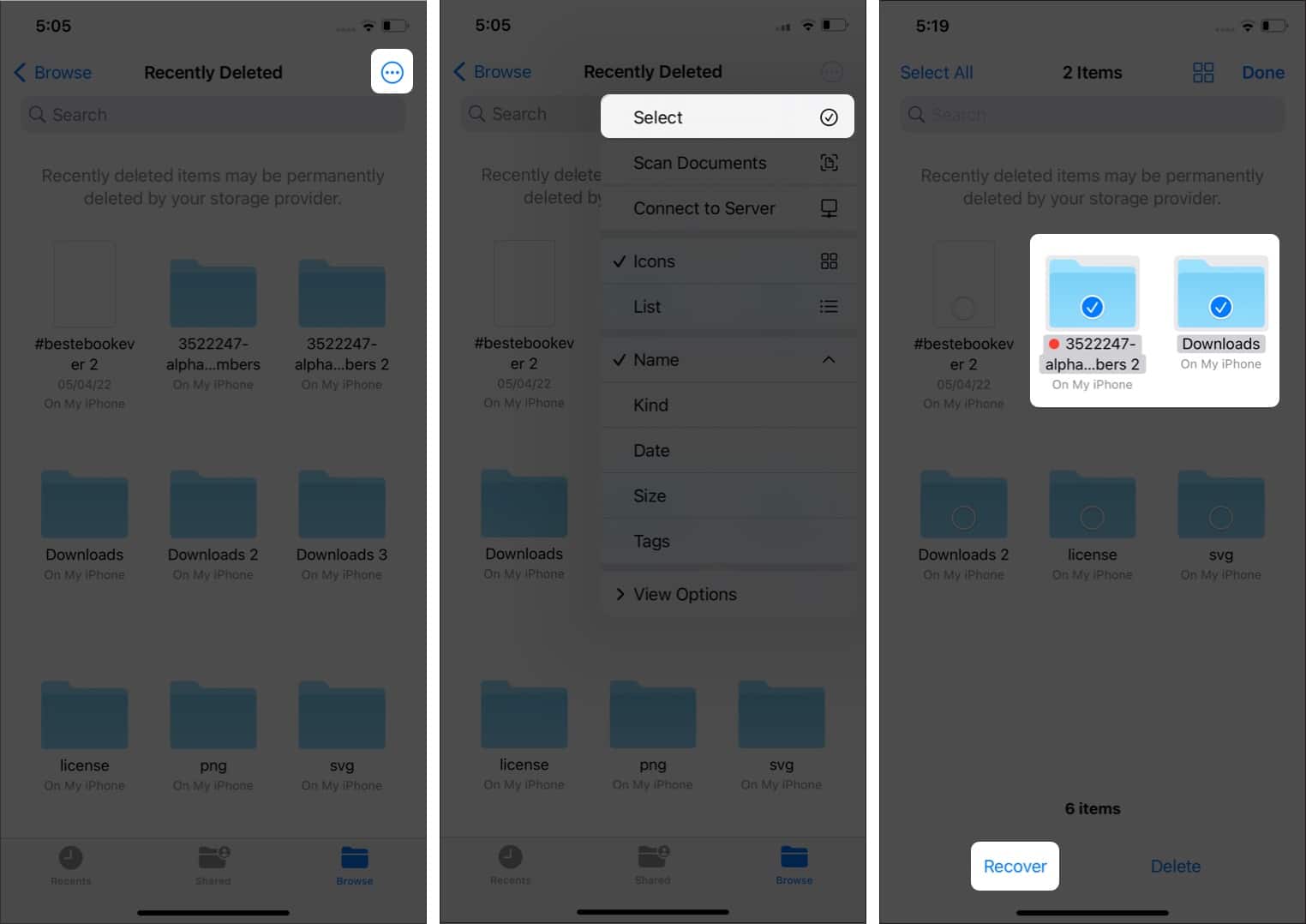 Από εδώ, μπορείτε να δείτε τα πρόσφατα αρχεία που έχετε πρόσβαση μέσω της εφαρμογής αρχείων. Μπορείτε να οργανώσετε την θέα πατώντας τοτετράγωναστην κορυφή και επιλέγοντας την επιλογή της επιλογής σας.