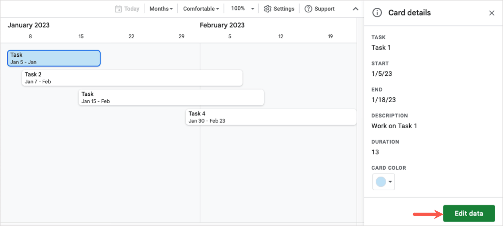 Μόλις ρυθμίσετε τη ρύθμιση των δεδομένων σας, μπορείτε να δημιουργήσετε το χρονοδιάγραμμα. Εάν θέλετε να κάνετε προσαρμογές στα δεδομένα, μπορείτε ακόμα να το κάνετε και το χρονοδιάγραμμα θα ενημερωθεί αυτόματα.
